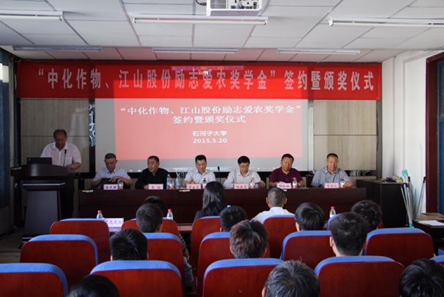 5月20日,由南通江山農(nóng)藥化工股份有限公司與中化作物保護(hù)品有限公司聯(lián)合捐助的“中化作物、江山股份勵(lì)志愛農(nóng)獎(jiǎng)學(xué)金”簽約暨首次頒獎(jiǎng)儀式在石河子大學(xué)農(nóng)學(xué)院隆重舉行。公司黨委副書記茅云龍、中化作物副總經(jīng)理王權(quán)、石河子大學(xué)校長(zhǎng)助理?xiàng)钚氯⑥r(nóng)學(xué)院黨委副書記艾尼瓦爾等校院領(lǐng)導(dǎo)以及校輔導(dǎo)員、學(xué)生代表參加了簽約及頒獎(jiǎng)儀式。