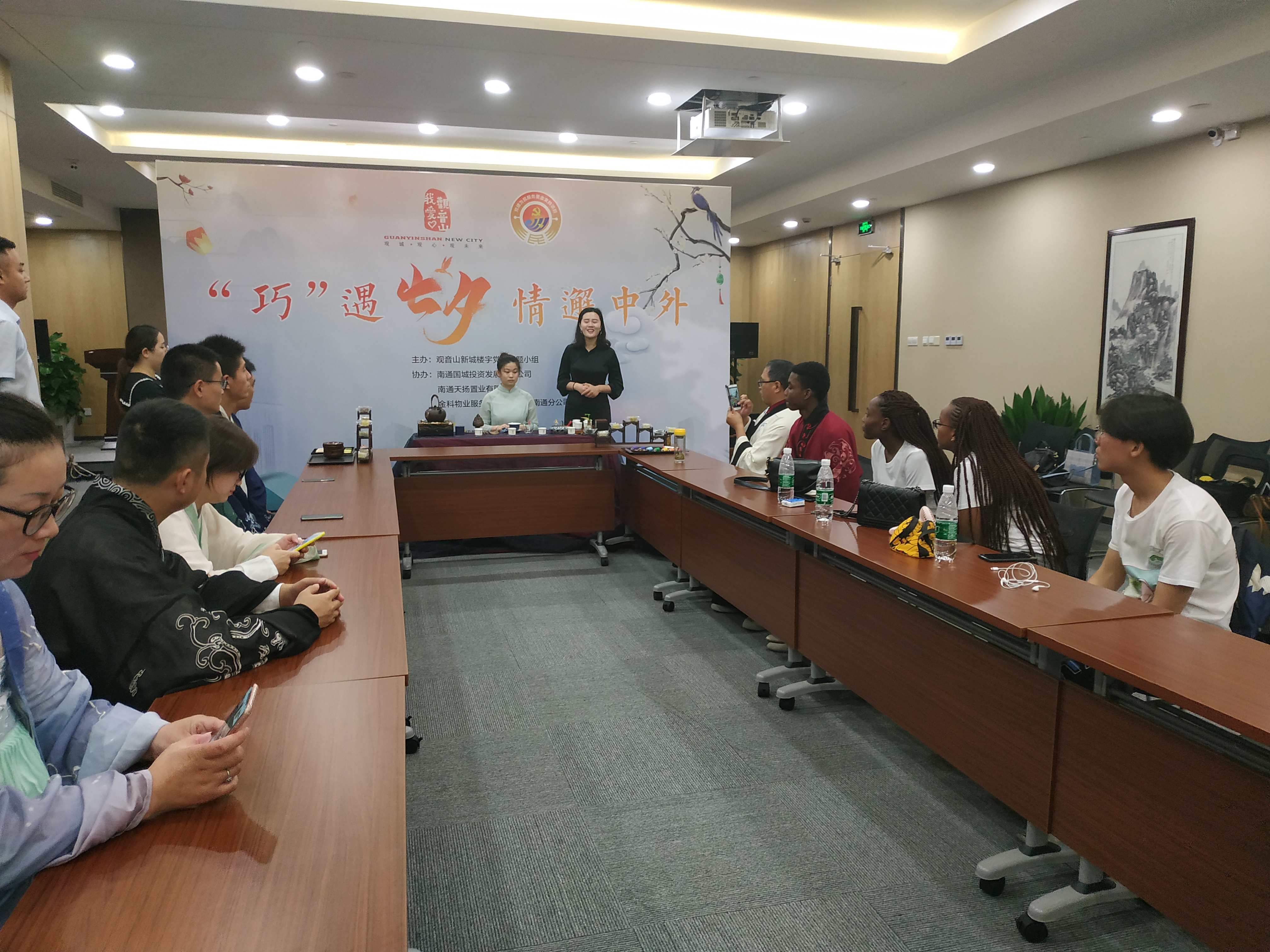 南通國城投資發(fā)展有限公司積極探索多方共建發(fā)展之路,于8月6日上午聯(lián)合南通天揚(yáng)置業(yè)有限公司、金科物業(yè)及當(dāng)?shù)赜^音山新城樓宇黨建課題小組等四家單位在國城廣場A幢寫字樓聯(lián)合主辦了“巧遇七夕、情邂中外” 七夕情人節(jié)共建活動(dòng)。