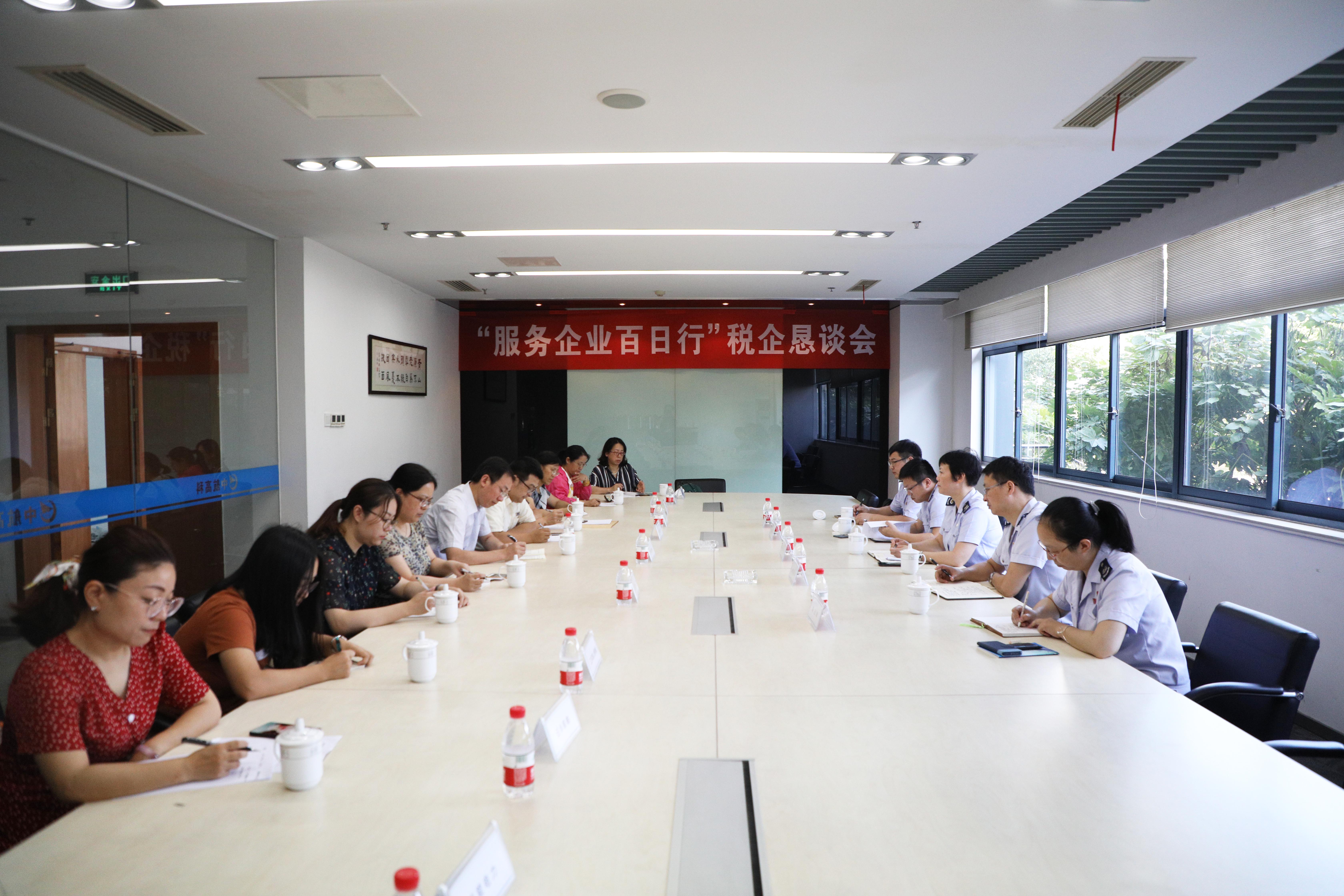 8月2日,南通稅務局第一分局局長劉萍,副局長唐新華、蔡威一行五人來中航航空高科技股份有限公司走訪,與中航高科、大地電氣等十家單位的財務工作者圍繞減稅、降費這一政策在總部一樓會議室召開稅企懇談會。