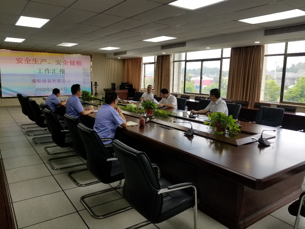 9月16日上午,產(chǎn)控集團黨委書記、董事長張劍橋,黨委副書記黃培豐一行對南通通糧糧食儲備有限公司進行安全儲糧、安全生產(chǎn)檢查并調(diào)研指導(dǎo)工作。通糧儲備公司領(lǐng)導(dǎo)班子成員參加調(diào)研。