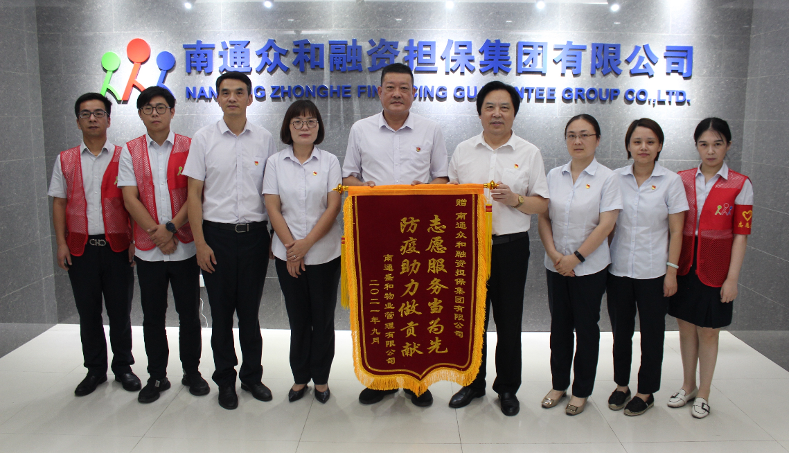 9月6日下午,南通盛和物業(yè)有限公司黨支部書記兼總經(jīng)理劉曉軍、副總經(jīng)理高曉蓉一行向眾和擔保送來了印有“志愿服務當為先 防疫助力做貢獻”字樣的錦旗,誠摯感謝眾和擔保在盛和物業(yè)駐啟瑞廣場防疫工作人手緊張的關(guān)鍵時期,迅速組建了一支40名青年黨員、業(yè)務骨干構(gòu)成的“兩在兩同 同心抗疫”志愿者服務隊。他們利用工作之余,起早貪黑,放棄午休,不辭辛苦,堅守在防疫一線。從測溫驗碼到秩序維護,從交通疏導到卡口管理,哪里需要就到哪里,為啟瑞物業(yè)防疫工作作出了積極貢獻,也得到了啟瑞廣場業(yè)主的點贊,充分彰顯了國有企業(yè)責任擔當。
