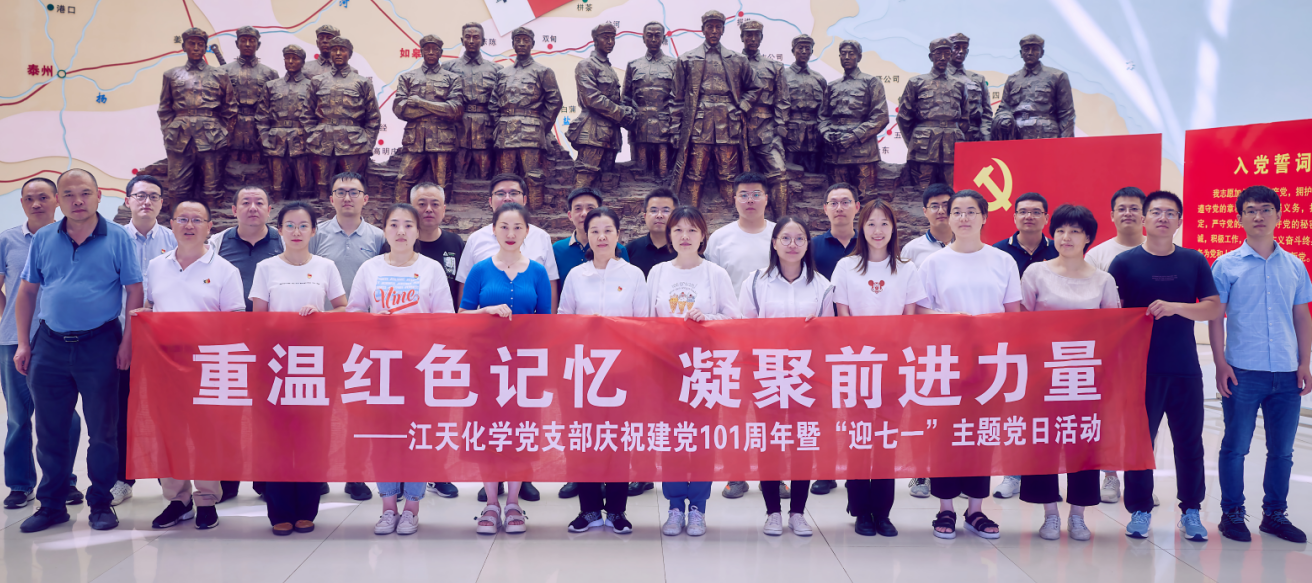 為慶祝中國共產(chǎn)黨成立101周年,根據(jù)公司黨支部的統(tǒng)一安排,6月26日,江天化學(xué)黨支部黨員、預(yù)備黨員、發(fā)展對象、入黨積極分子以及入黨申請人赴海安蘇中七戰(zhàn)七捷紀(jì)念館和如皋紅十四軍紀(jì)念館開展以“重溫紅色記憶 凝聚前進(jìn)力量”為主題的“迎七一”主題黨日活動。